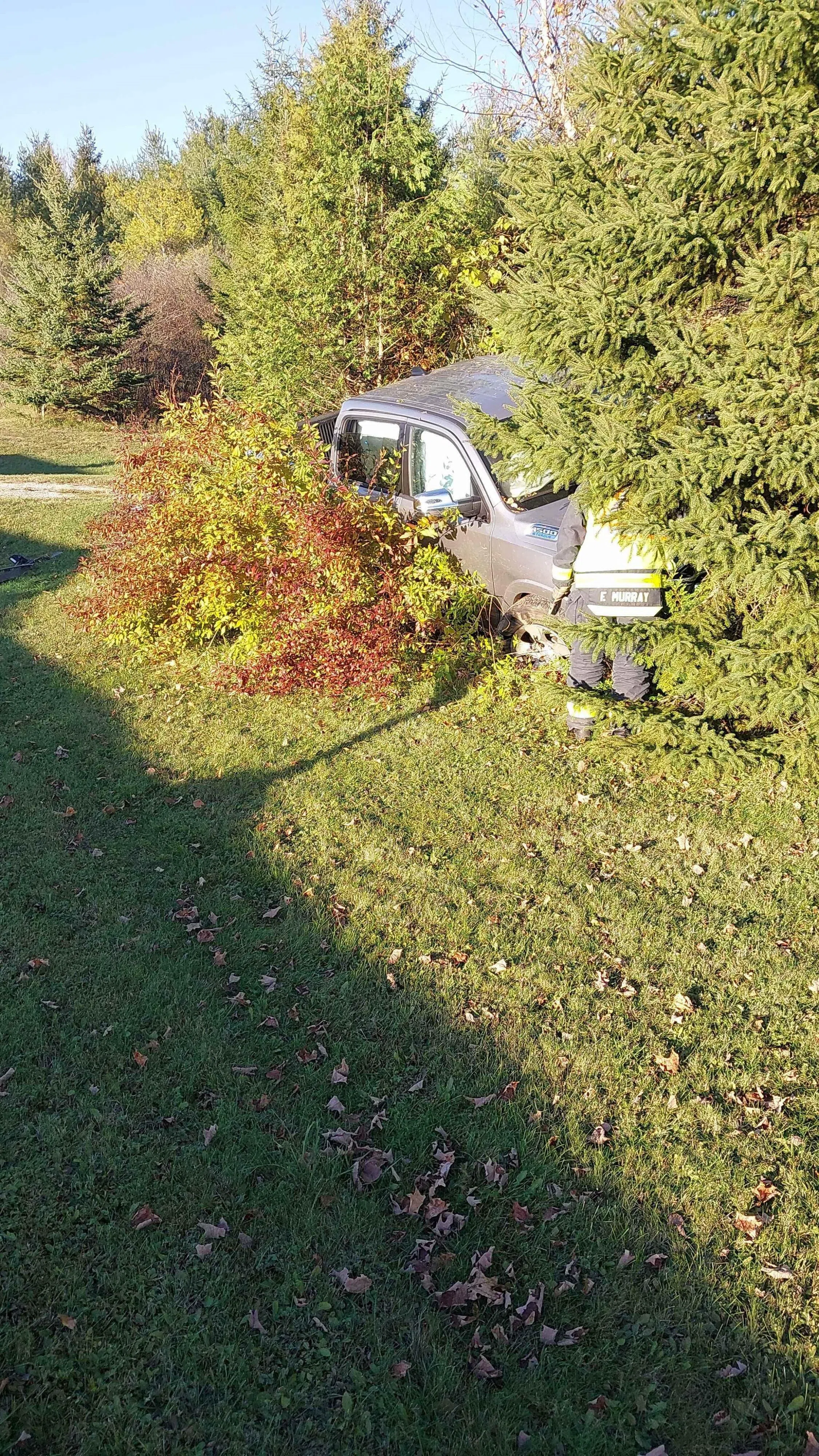 Grey Bruce OPP say they responded to the single motor vehicle collision east of Markdale on Blue Jay Crescent in Grey Highlands around 4:30 p.m. Wednesday afternoon.